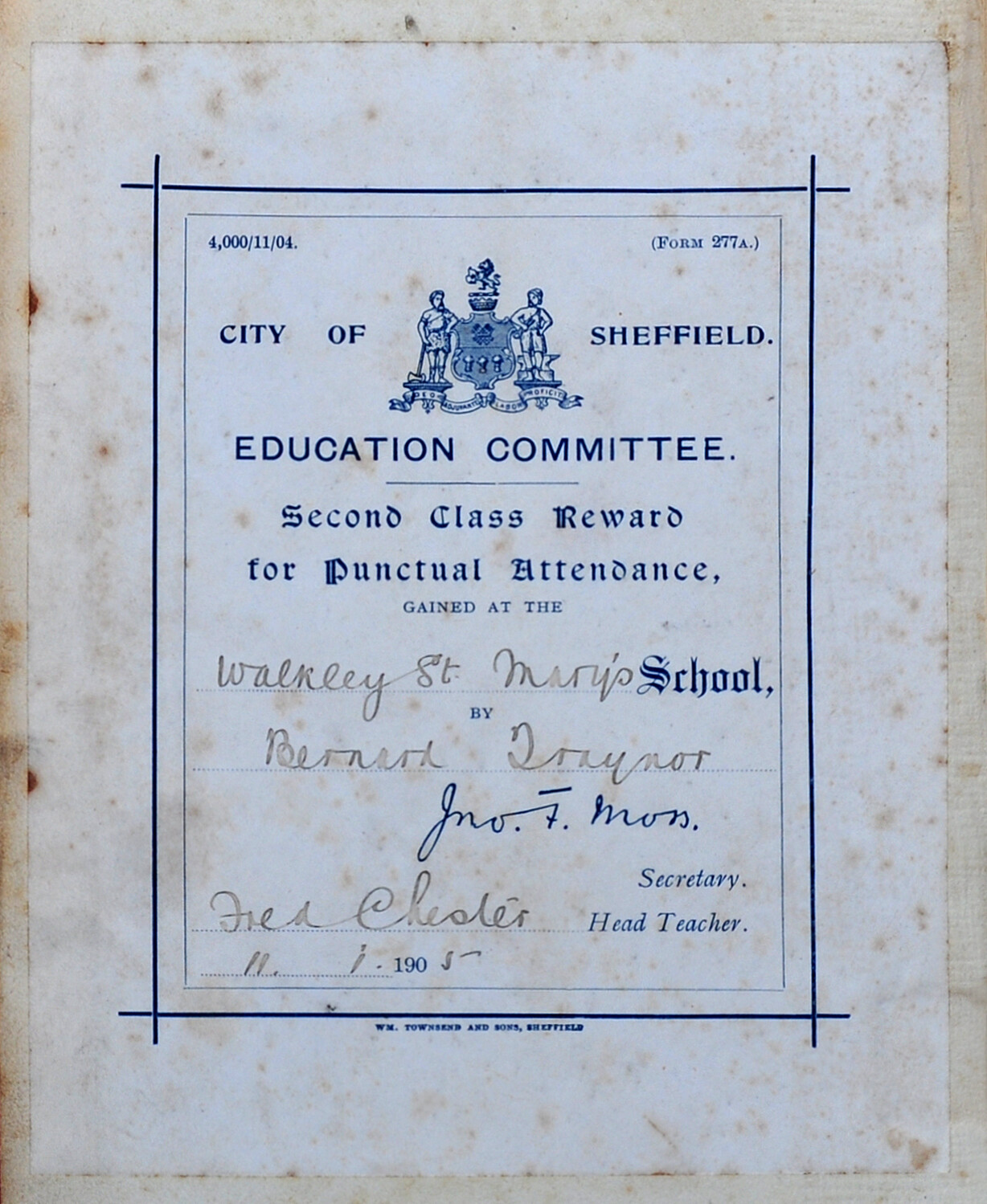 In 1903 St Mary's was taken over by the Sheffield Education Committee. This was the beginning of free education.